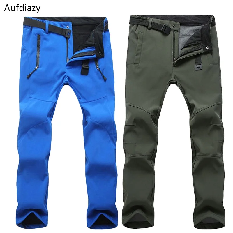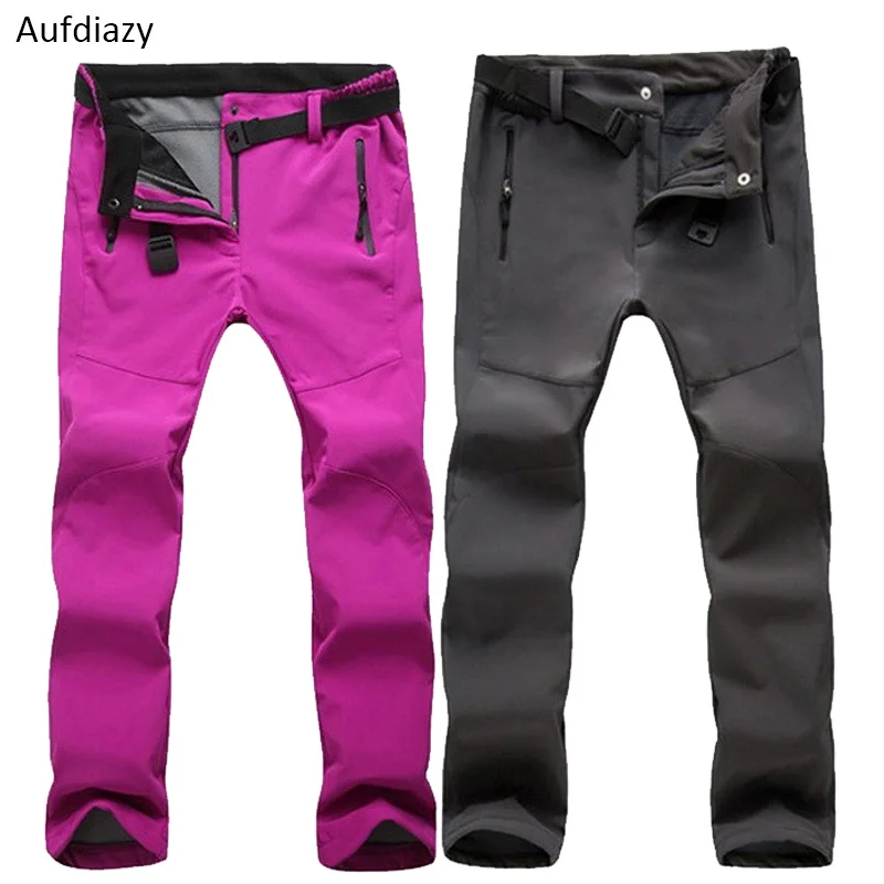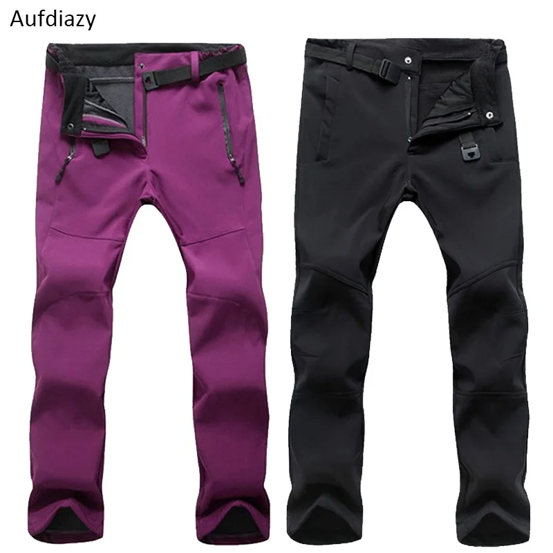 Aufdiazy Winter Men Women Fleece Softshell Camping Hiking Pants Outdoor Sports Waterproof Windproof